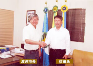 その後、ブラジルから当協会に、中沢会長、蛸井理事、横田理事の訪問を受けました。 昨年再び、信田理事がブラジルに行き、ニームの植林をしてきました。 その折、 中沢会長はじめ、日系人の渡辺市長に大変お世話になりました。