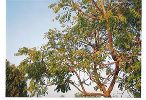 インド東北部からミャンマー周辺が原産といわれるニーム(Neem=学名Azarirachta indica A juss カンボジア名スダウsdau)は東南アジアでは広く自生または栽培されています。減農薬や有機栽培が求められる今日この樹が持つ害虫忌避作用や土壌改良効果が、日本ではもとより世界中の農業関係研究者から注目されていました。